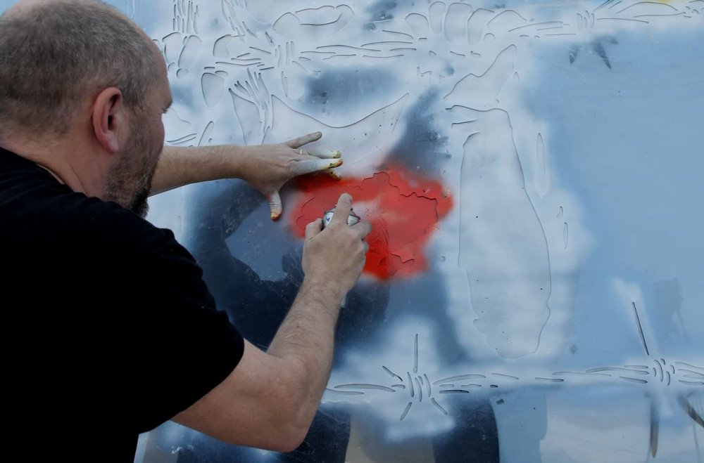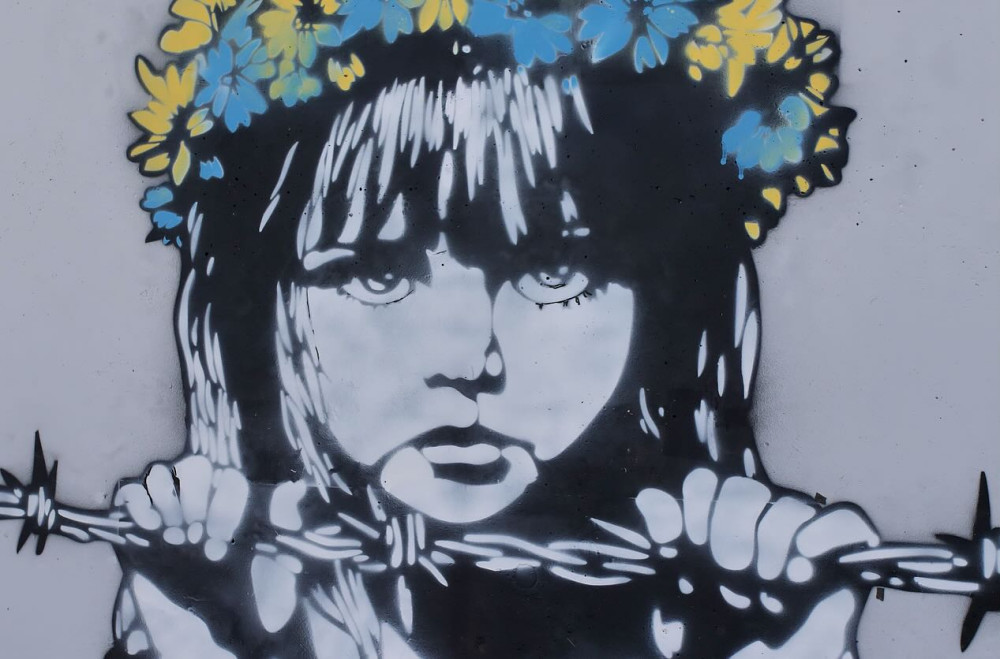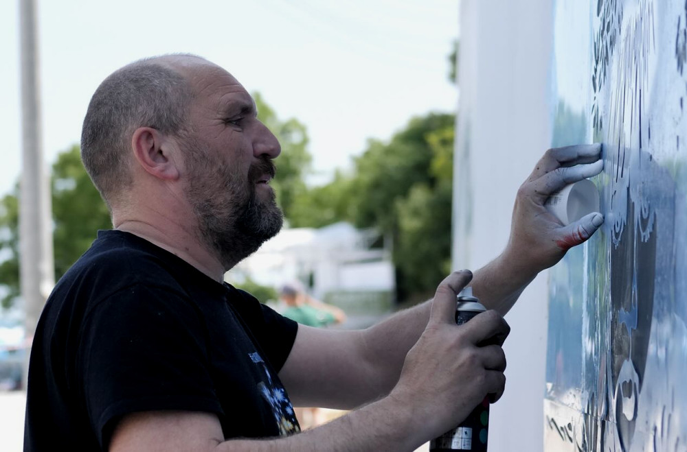 On one of Odesa’s beaches, Ukrainian artist Andriy Yermolenko created a mural depicting a girl behind barbed wire — a symbol of abducted and forcibly deported Ukrainian children to Russia. Her gaze is filled with emotion, pain, and longing. Above her heart is a red map of Ukraine, symbolizing a living identity despite attempts to erase it.