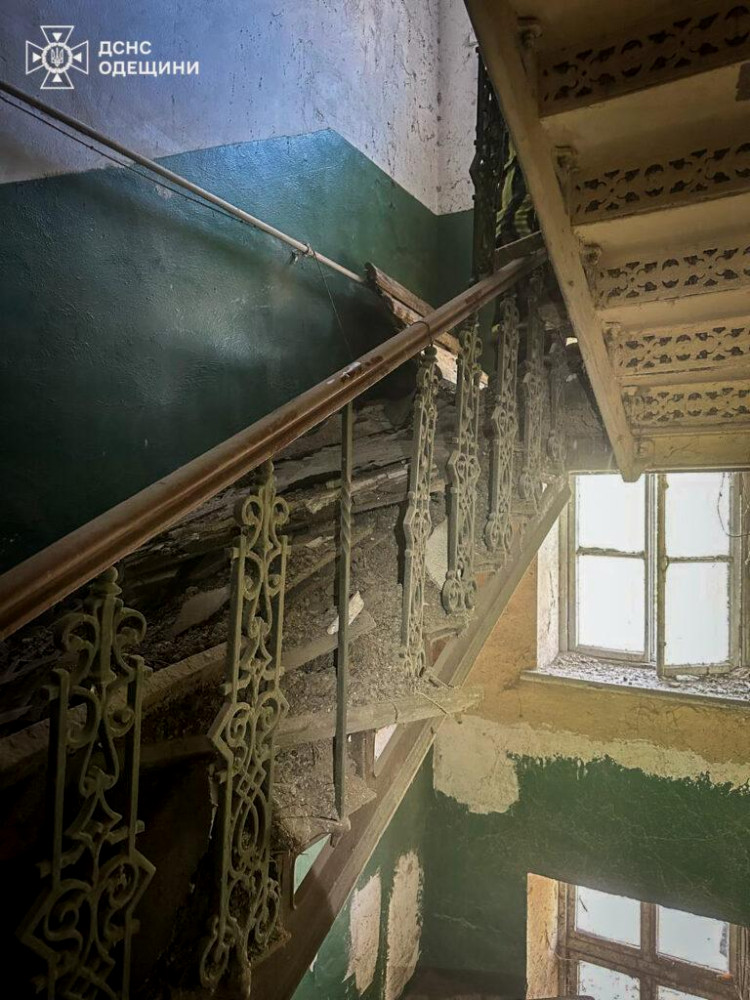 Last night, August 10th, a partial collapse of the roof structure occurred above the stairwell on the fourth floor of a four-story residential building on Balkivska Street in Odessa's Primorsky district. As a result of the incident, residents' entrance doors on the fourth floor were blocked.