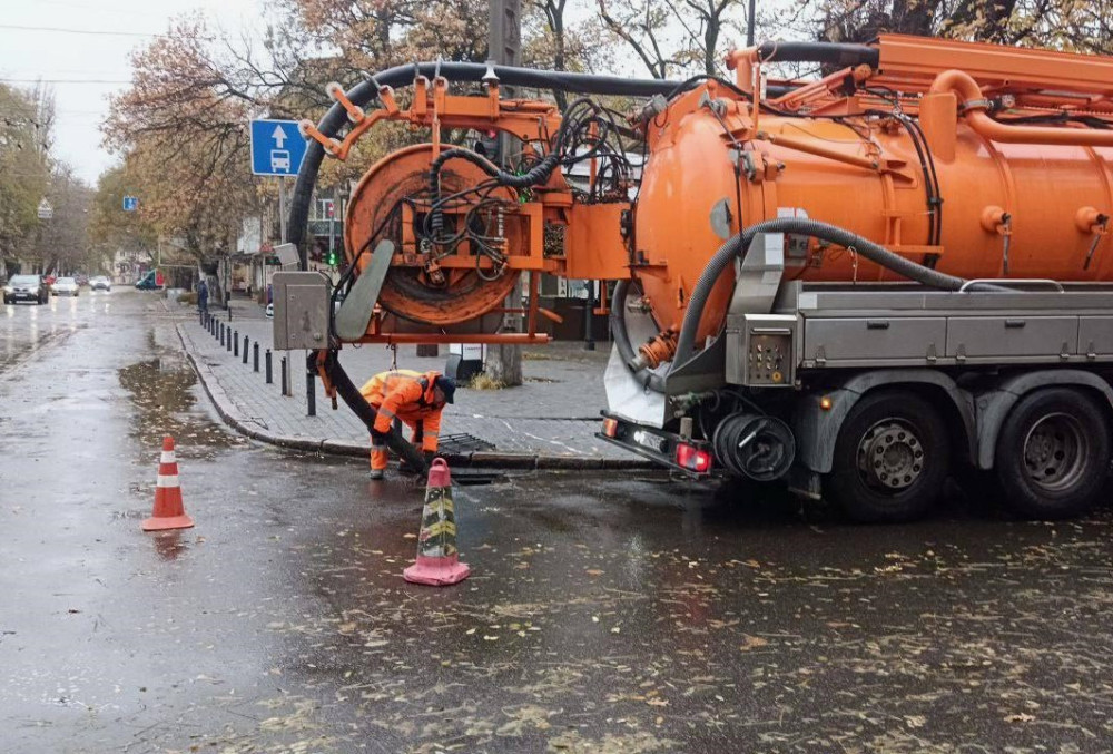 The cleaning of stormwater drainage systems in Odessa is carried out regularly according to a plan, and during heavy rains, emergency crews from «City Roads» work on the streets to clear the grates from fallen leaves and debris carried by the rainwater, ensuring unobstructed drainage.