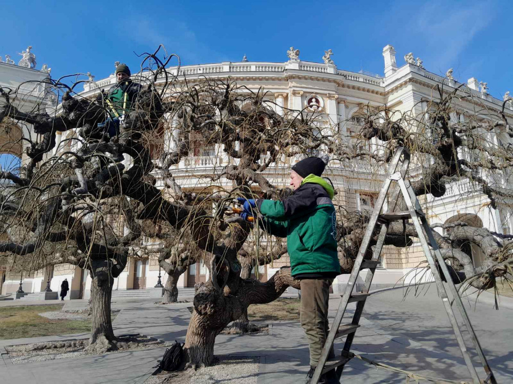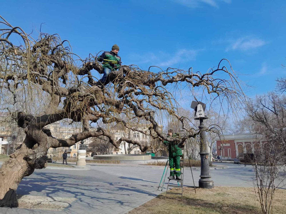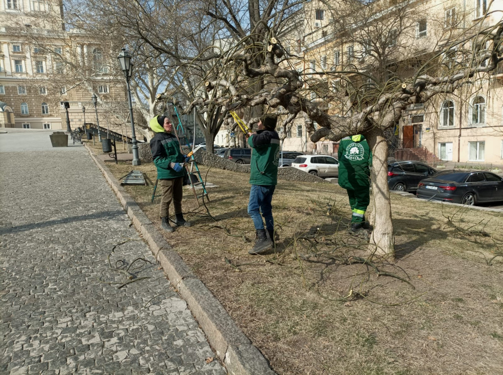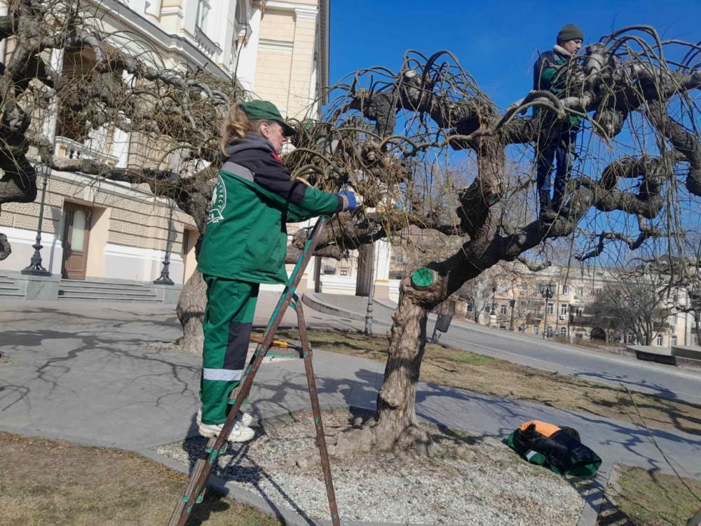 Since early February, gardeners have begun rejuvenating pruning of sophoras throughout the city, using hand pruners. The weeping crown shape of the Japanese sophora is not natural and is artificially created by the gardeners, which is why regular trimming of this plant is essential. This year, at the sites serviced by the KP «Miskzelentrest» (including the City Garden, Theater Square, T.G. Shevchenko Park, and others), it is planned to conduct formative pruning of 463 weeping trees.