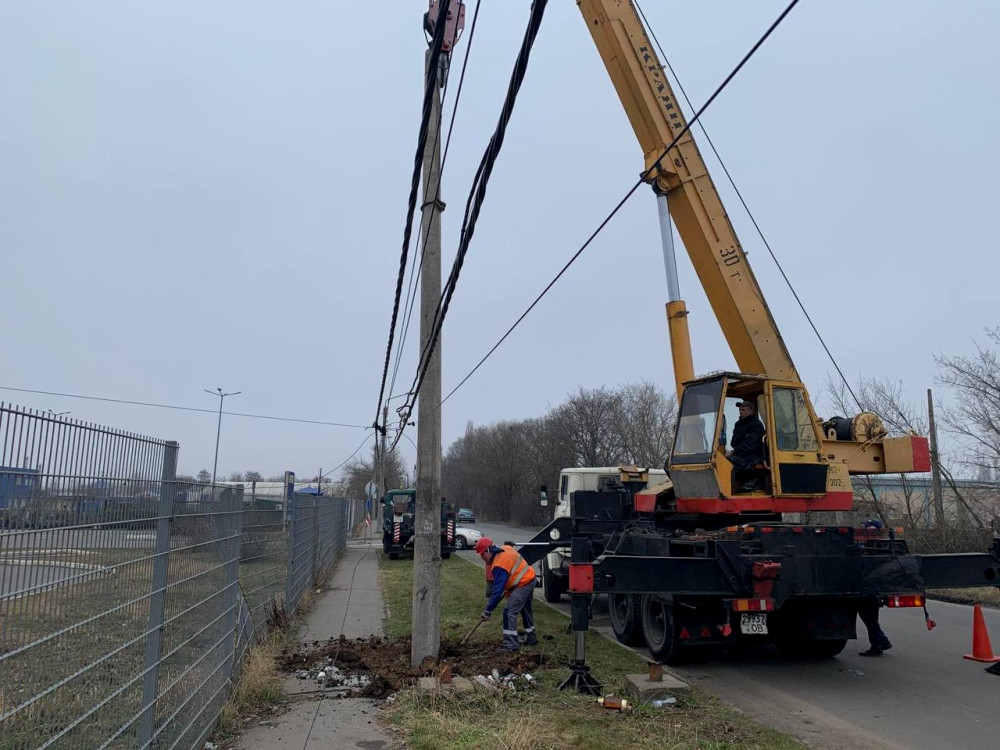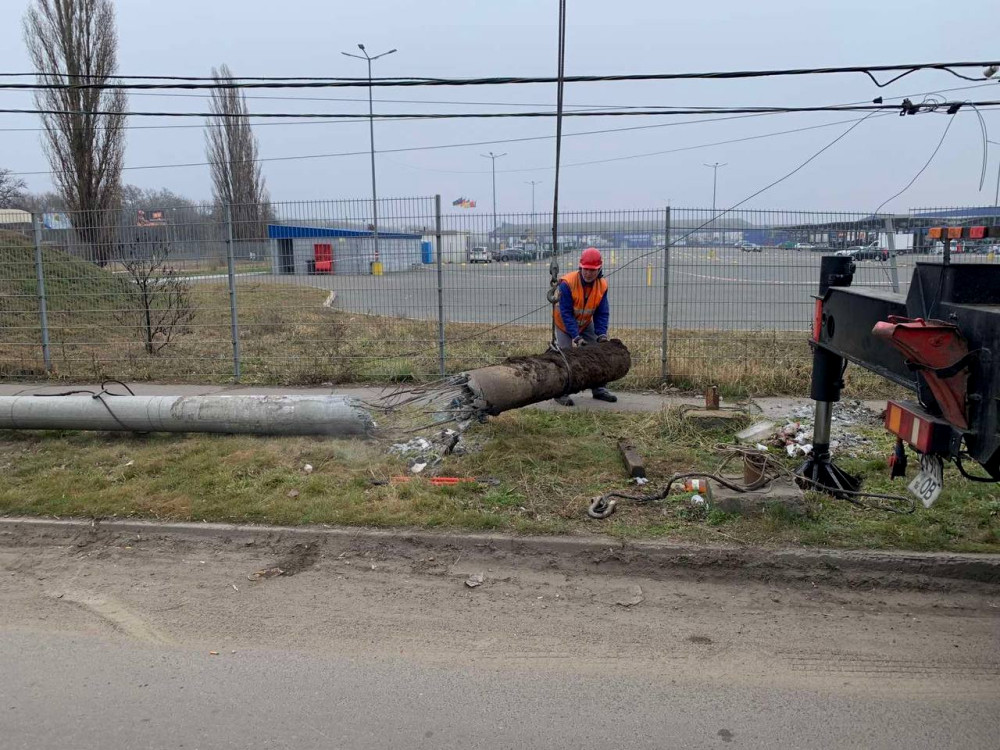 The electricians conducted the dismantling of the damaged pole and installed a new reinforced concrete pole with lighting fixtures and a cable line.