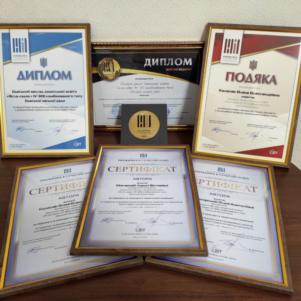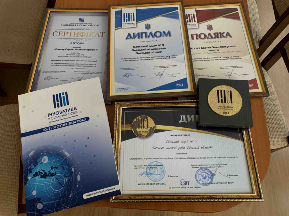 Educational institutions from Odesa, including Lyceums No. 6 and No. 9, Odesa Law Lyceum, and the combined preschool 'Kindergarten No. 300', received gold, silver, and bronze medals, along with certificates for their competitive works.