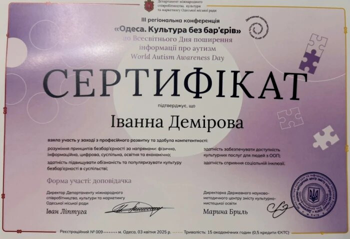 2025 has been declared the year of ACCESSIBLE SPACE in Ukraine, and the conference «Culture Without Barriers» was a significant step in this initiative. The goal was to create an accessible cultural space and implement inclusive solutions for children with special educational needs.