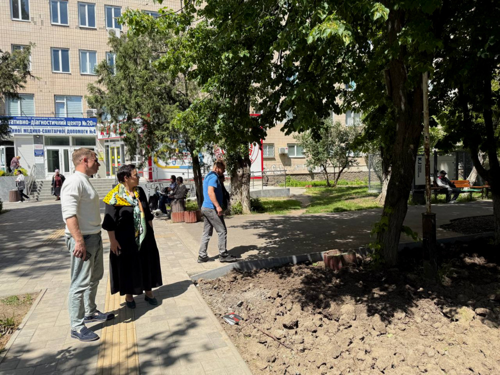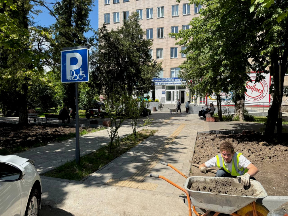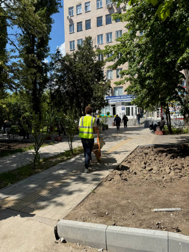 В районе Одессы, на улице Левитана, 62, проводятся работы по улучшению территории, прилегающей к КНП «Консультативно-диагностический центр №20» Одесского городского совета.