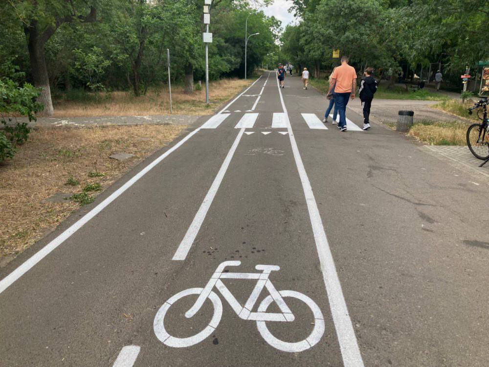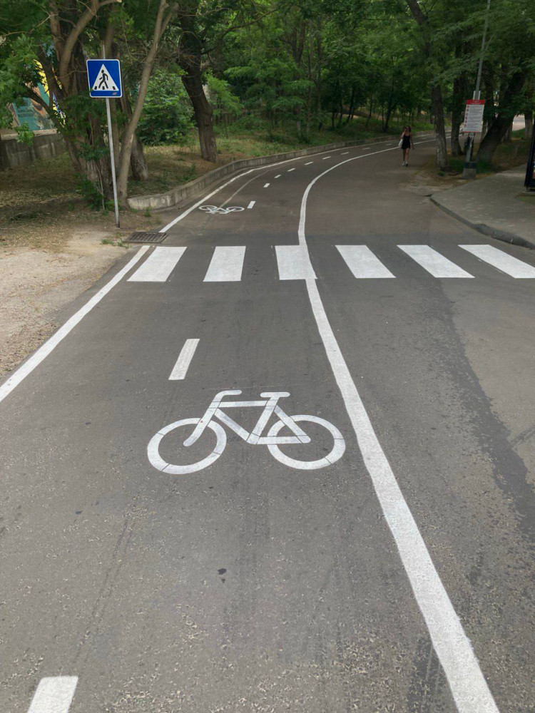 Сотрудники Коммунального Учреждения СМЭП восстановили 5200 метров дорожной разметки на Трассе Здоровья.