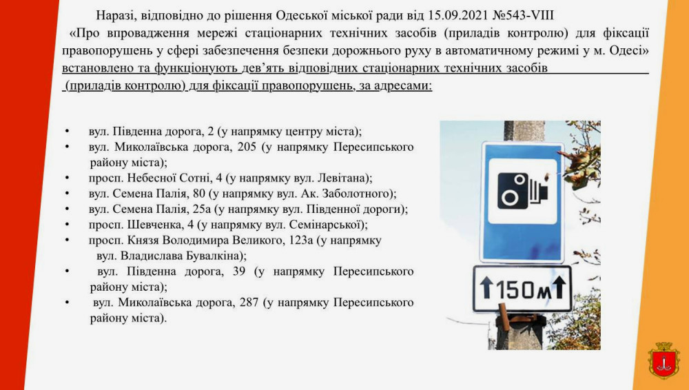 Установка камер согласована с соответствующими органами и соответствует требованиям, утвержденным правительством. Решение о расширении сети камер будет вынесено на рассмотрение Одесского городского совета в ближайшее время.