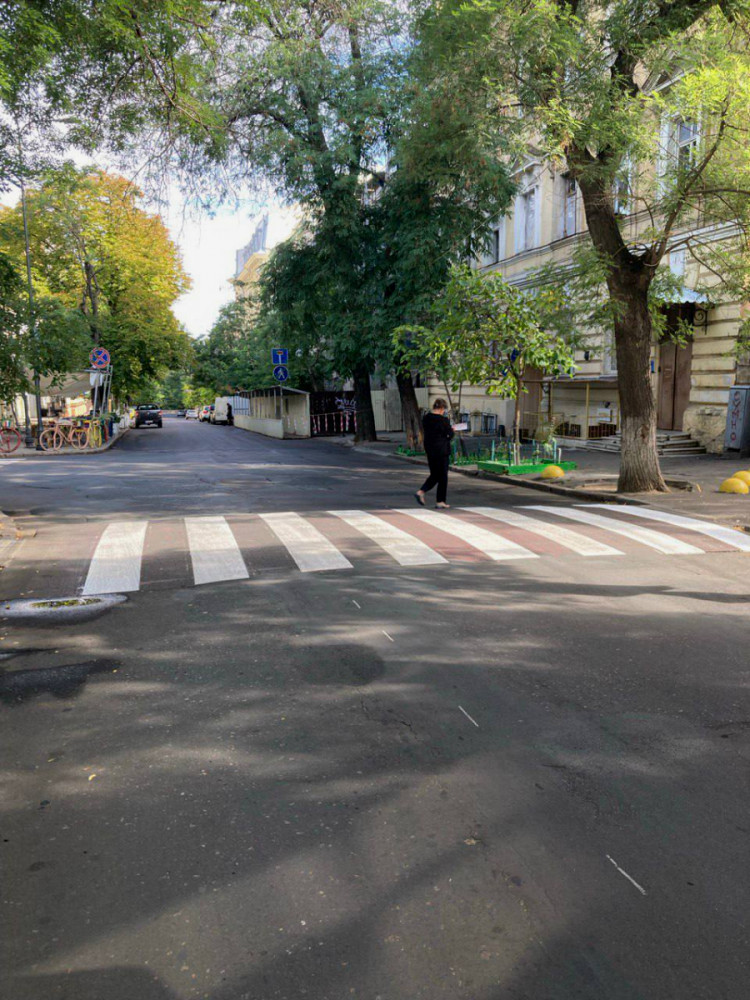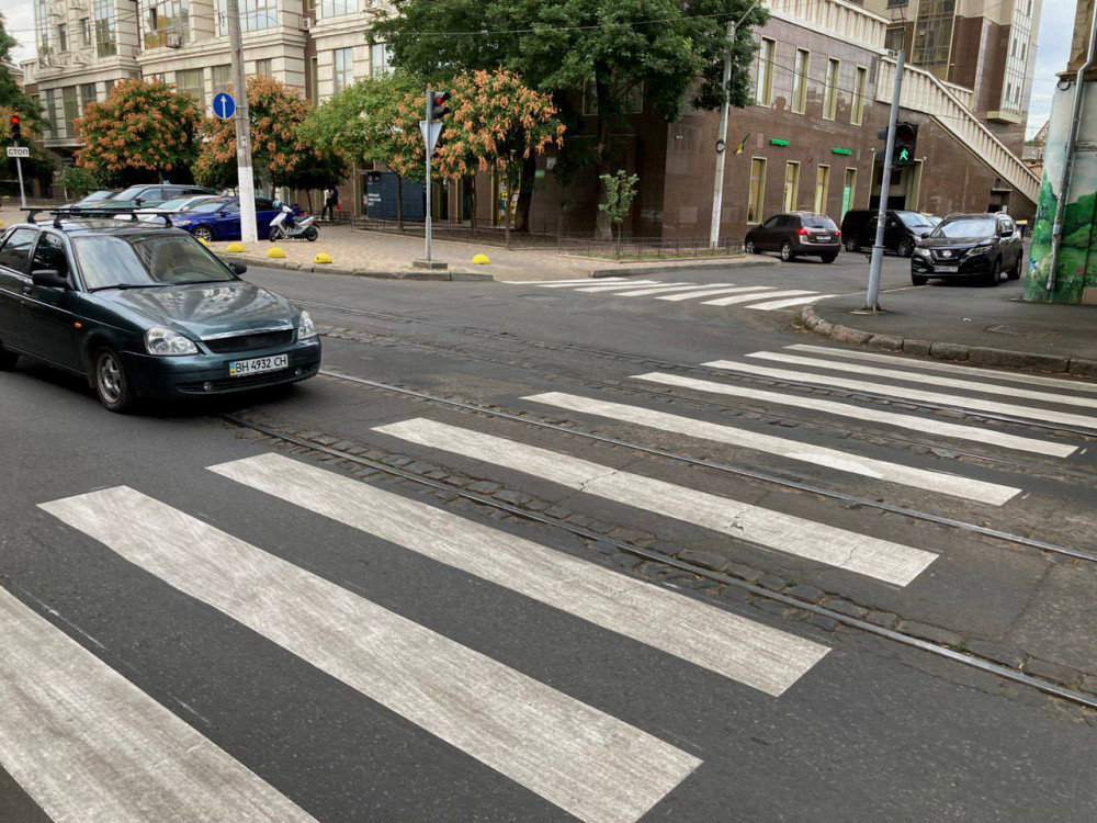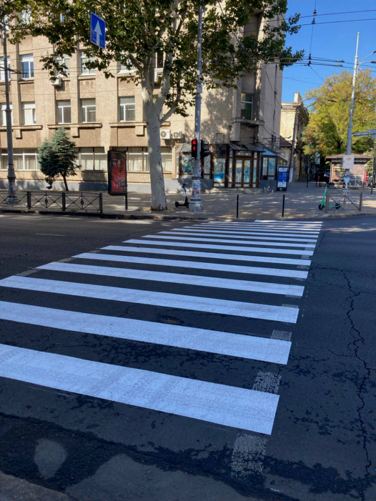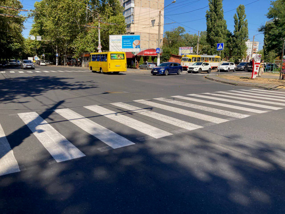 Специалисты Коммунального учреждения «СМЕП» продолжают работы по обновлению дорожной разметки на пешеходных переходах в районе школ Одессы.