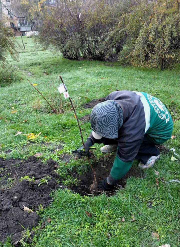 Саженцы павловнии (6 шт), сирени (5 шт), яблонь (5 шт) и миндаля (10 шт) обогатили флору парка.