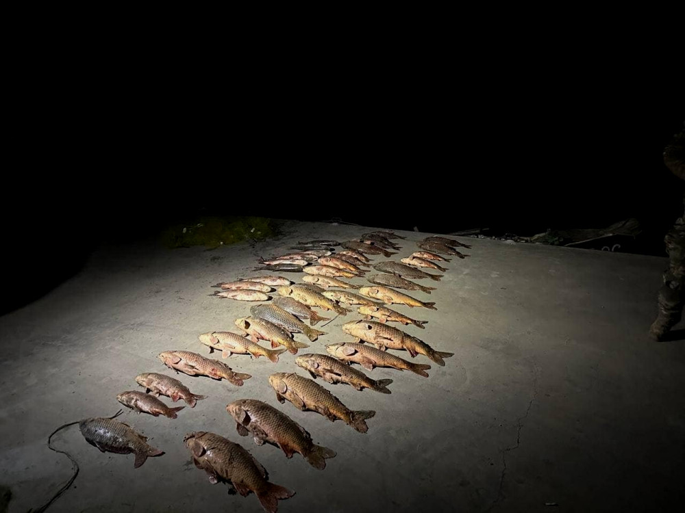 Во время рыбохозяйственного рейда, государственные инспекторы совместно с пограничной службой и полицией зафиксировали серьезное нарушение рыбных норм.