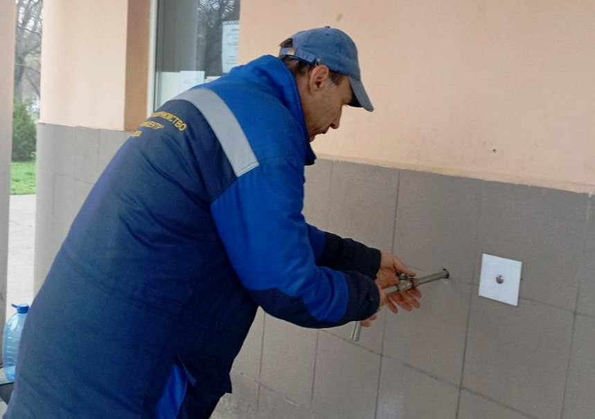 Каждый день работники предприятия начинают свою смену с подготовки оборудования для выдачи питьевой воды жителям. Они также приводят в порядок территории вокруг бюветов и зоны выдачи воды.