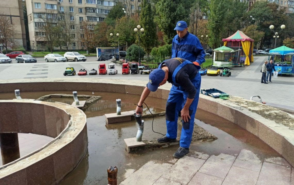 Все работы по восстановлению оборудования фонтанов и устранению различных повреждений выполняют специалисты КП «Сервисный центр», которые, несмотря на все трудности военного времени, продолжают выполнять свою работу.