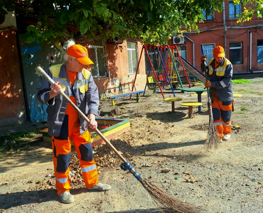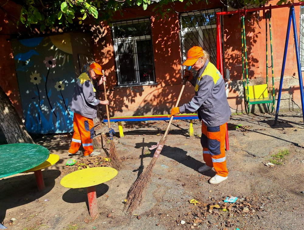 Дважды в день уборщики проводят работы по уборке (подметание дворов и тротуаров, очистка урн, сбор мусора, мытье баков для мусора и т.д.).