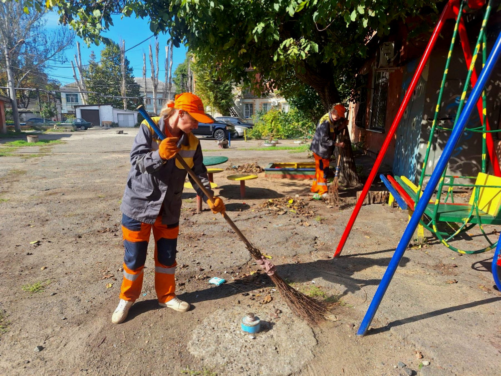 Сотрудники КП «Жилищно-коммунальный сервис «Пересыпский» ежедневно занимаются уходом за придомовыми территориями.