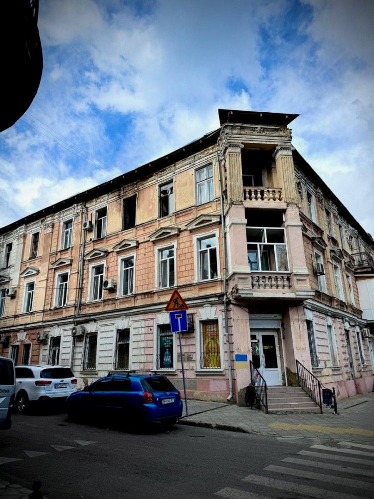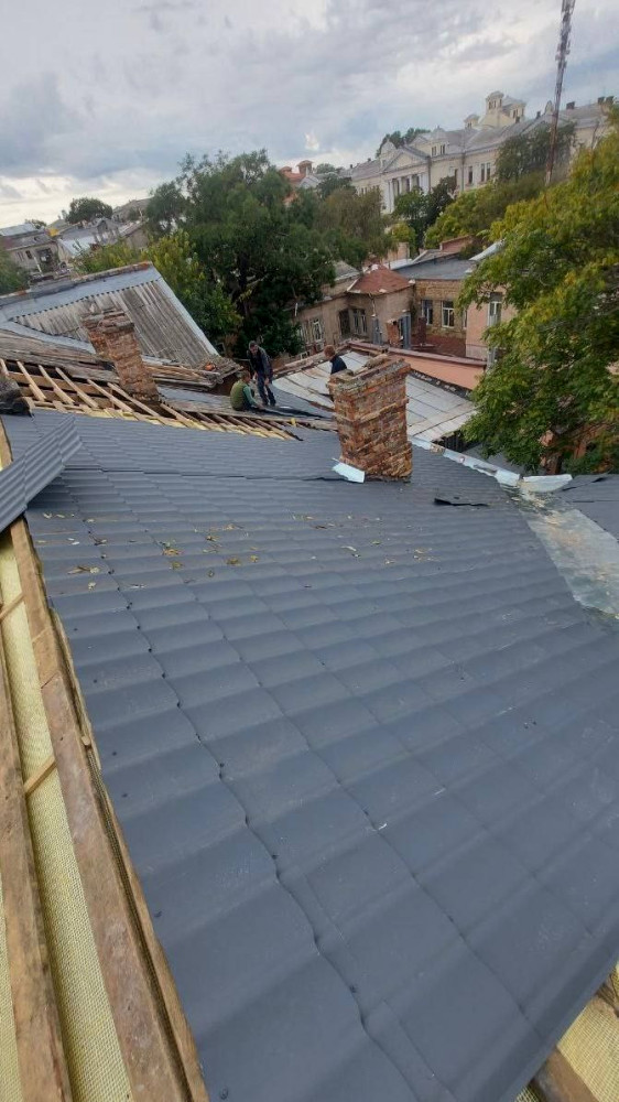16 октября делегация ООН посетила улицу Софиевскую, 6. Там благодаря сотрудничеству благотворительных организаций и коммунальных служб проводятся аварийные работы на крыше жилого дома.