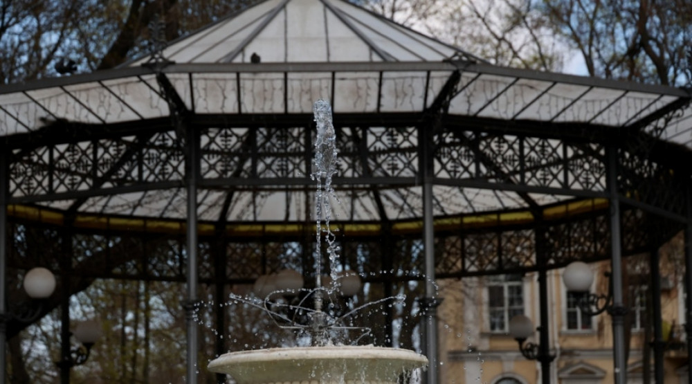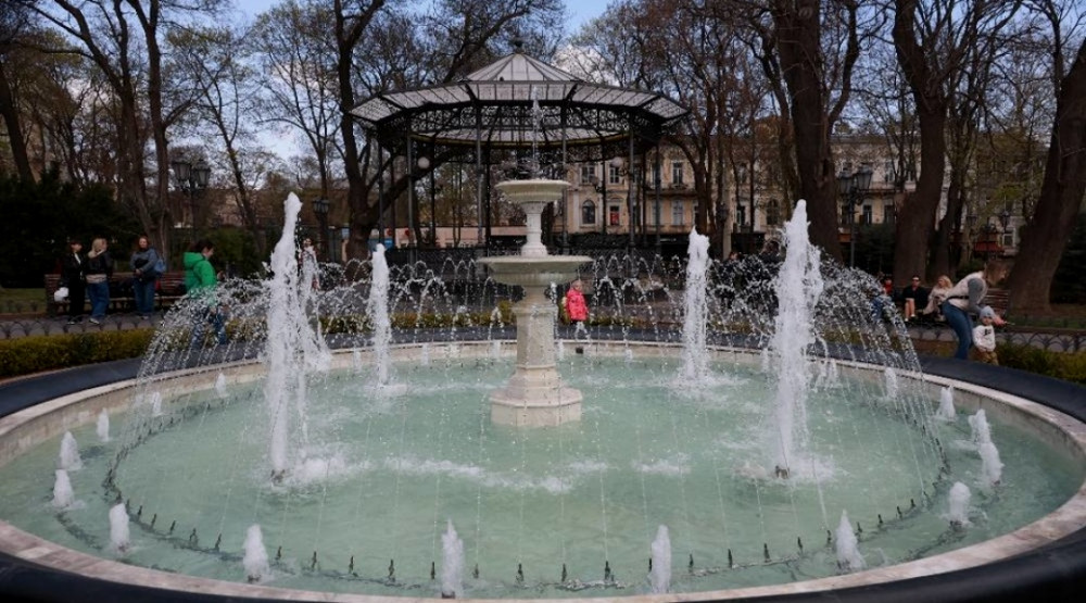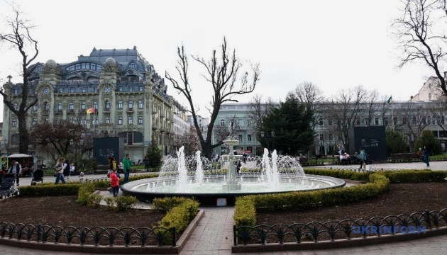 Первым был включен фонтан в Городском саду, сообщает корреспондент Укринформа.
