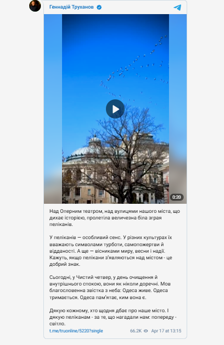 Сегодня, в Чистый четверг, день очищения, пеликаны пролетели над городом. Они стали символом надежды в этот особенный день.