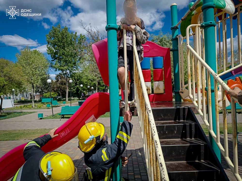 Утро на детской площадке в Килие началось с тревоги, когда девятилетняя девочка попыталась просунуть ногу между металлическими конструкциями горки и застряла.