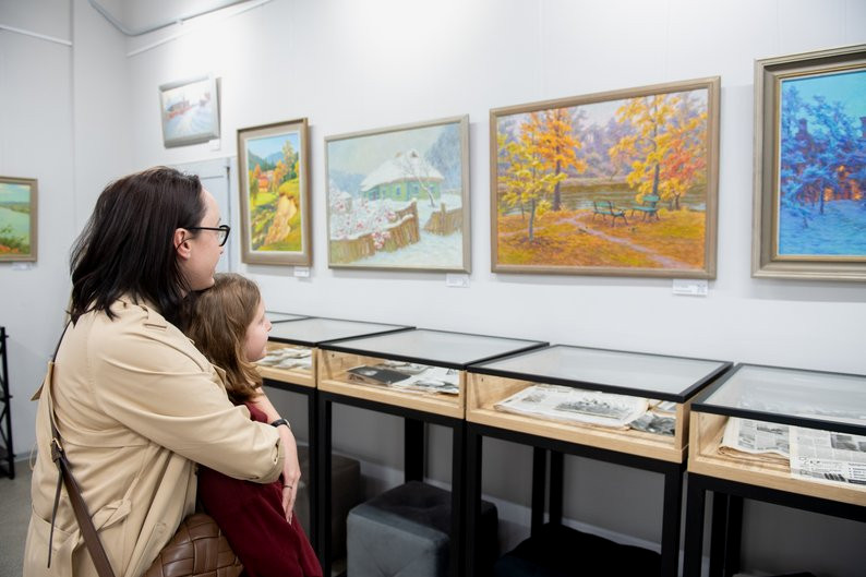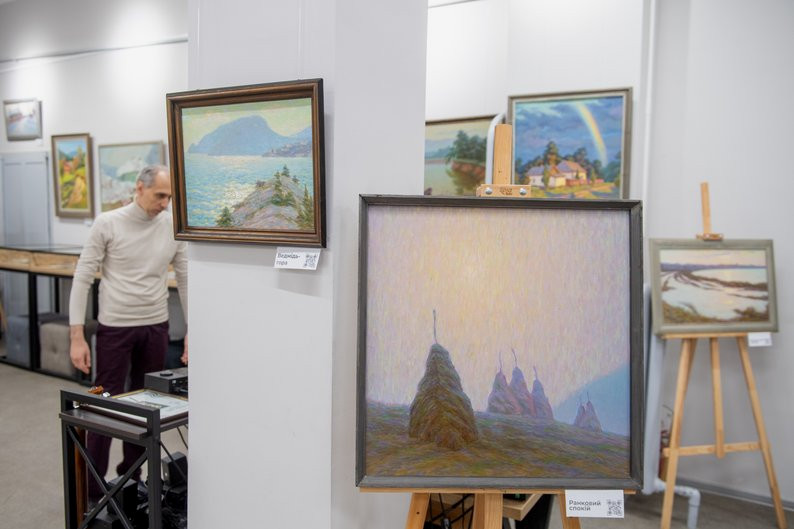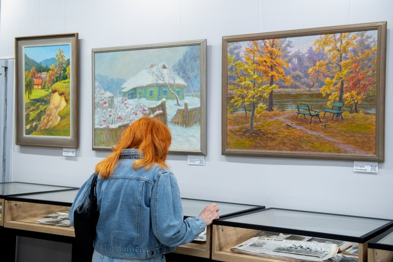 Экспозиция называется "Цвета Украины". На выставке представлены пейзажи различных регионов, которые посетил сам автор: