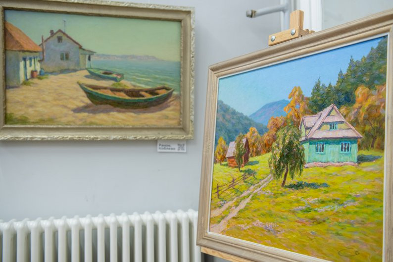 "Здесь можно увидеть Чернигов, Карпаты, Винницу, Черкасскую и Хмельницкую области. Есть даже этюд из Крыма, созданный до 2013 года. И, конечно, Одесса, в частности северная ее часть, где расположены дома под камышом. Будак — это настоящая жемчужина. С одной стороны лиман, с другой — море, а между ними тянется коса на 40 километров", — поделился впечатлениями художник.