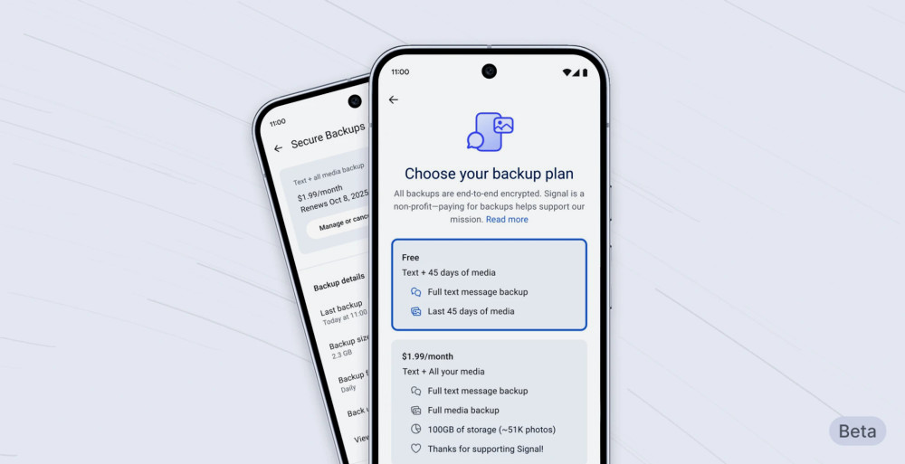 Мессенджер Signal представил свою первую платную функцию — возможность создания защищенных резервных копий медиа и текстовых сообщений. За $1,99 в месяц пользователи могут сохранять свои медиафайлы и текстовые сообщения без ограничений.