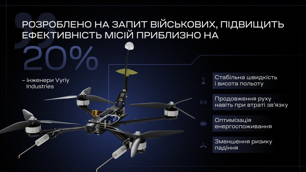 "Мы первыми в Украине реализовали подобное решение для дронов, которое было разработано по запросу военных. Это, по нашим расчетам, повысит эффективность дронов на примерно 20%", – отметили инженеры VYRIY.